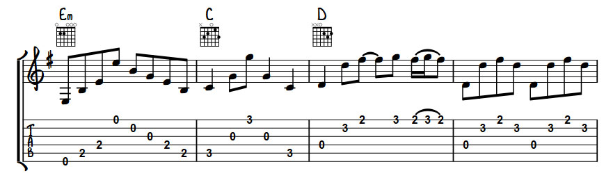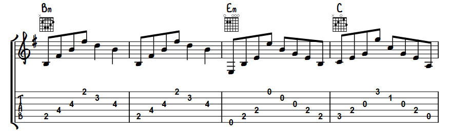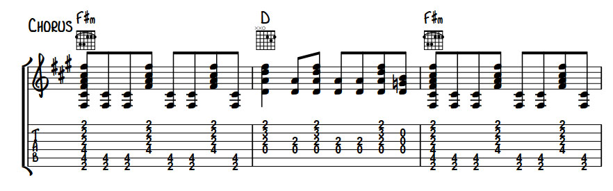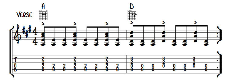 The song itself is a 2 chord wonder based around just E and A proving that less is more when it comes to creating a great piece of music. While it has a simple foundation it’s how these 2 chords are played and arranged that make the song work.